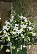 關於喜喪更換花色的建議依據台灣傳統習喪禮花卉會依照往生者年紀建議調整花材花色例:60、70歲,會使用白色為主花材略加些為輕柔色系/例如粉.紫.黃.香檳等,)